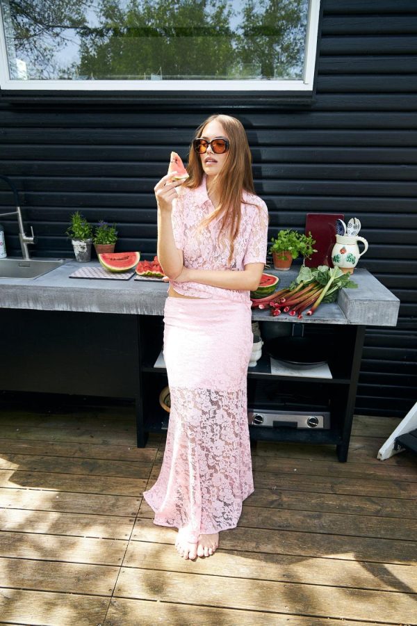 Maxi skirt in delicate lace fabric. Designed with a hidden side zipper and a mermaid-inspired silhouette for a flattering fit. Pair it with the Alanis blouse for the complete look. The style runs true to size, so we recommend choosing your usual size.• Lace• Maxi length• Hidden side zipperThe model is 172 cm tall and wears a size 36.Materials: 60% nylon, 40% cotton