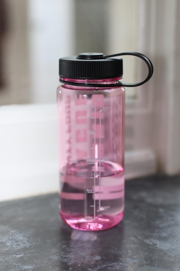 Our new waterbottle can hold 0.5 liter of liquid. When the lid is on, it forms a small handle, making it easy to carry the water bottle around with you.