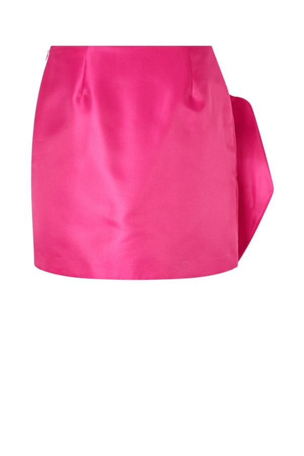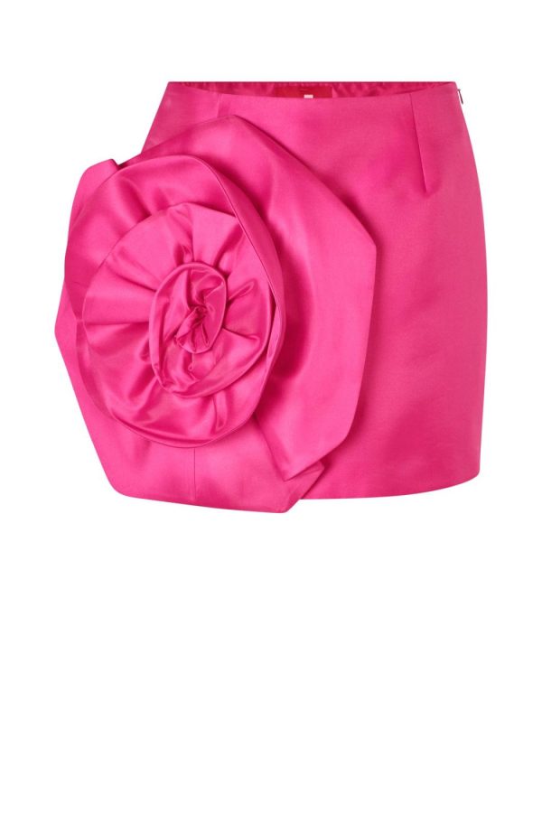 This tailored hot pink mini skirt makes a bold statement with its oversized, sculptural rose detail on front. The skirt has a hidden zipper in sideseam. Made of 100% recycled polyester. The model is 175 cm tall and wears a size 36.