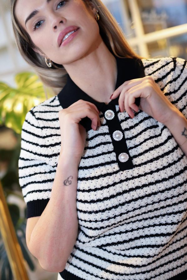 Cras Cph Spring Collection | Charlescras Knit Blouse Black Stripe Women