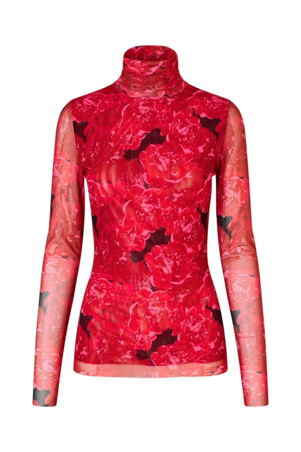 Slim fit blouse with print and a turtleneck. The blouse has a double-layered front, making it non-transparent in the front.The blouse is true to size, so we recommend choosing your usual size.• Print• Turtleneck• Slim fit• Double-layered frontThe blonde model is 162 cm tall and wears a size 36. The brunette model is 175 cm tall and wears a size 36.Made of 92% recycled polyester and 8% elastane.